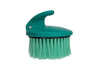 Green brush with a black handle on a white surface