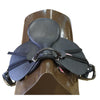 Comes with or without a front strap for security, and is fitted with a padded cotton girth, nylon stirrup leathers and safety stirrups.